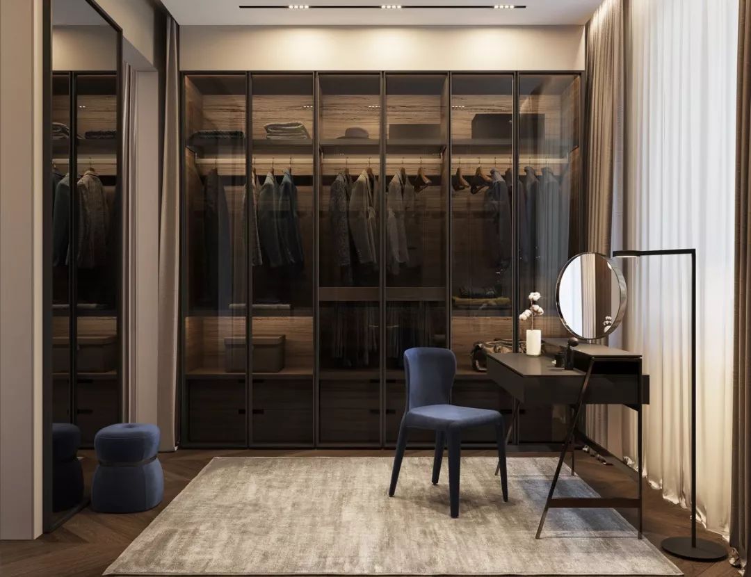 步入式衣柜起源于歐洲,與一般衣柜相比,其儲放空間更完整,衣物取用也更加便利。但因為它不僅要有足夠的儲物空間,還要預(yù)留給使用者行走的通道,因此在豪宅中更為流行。