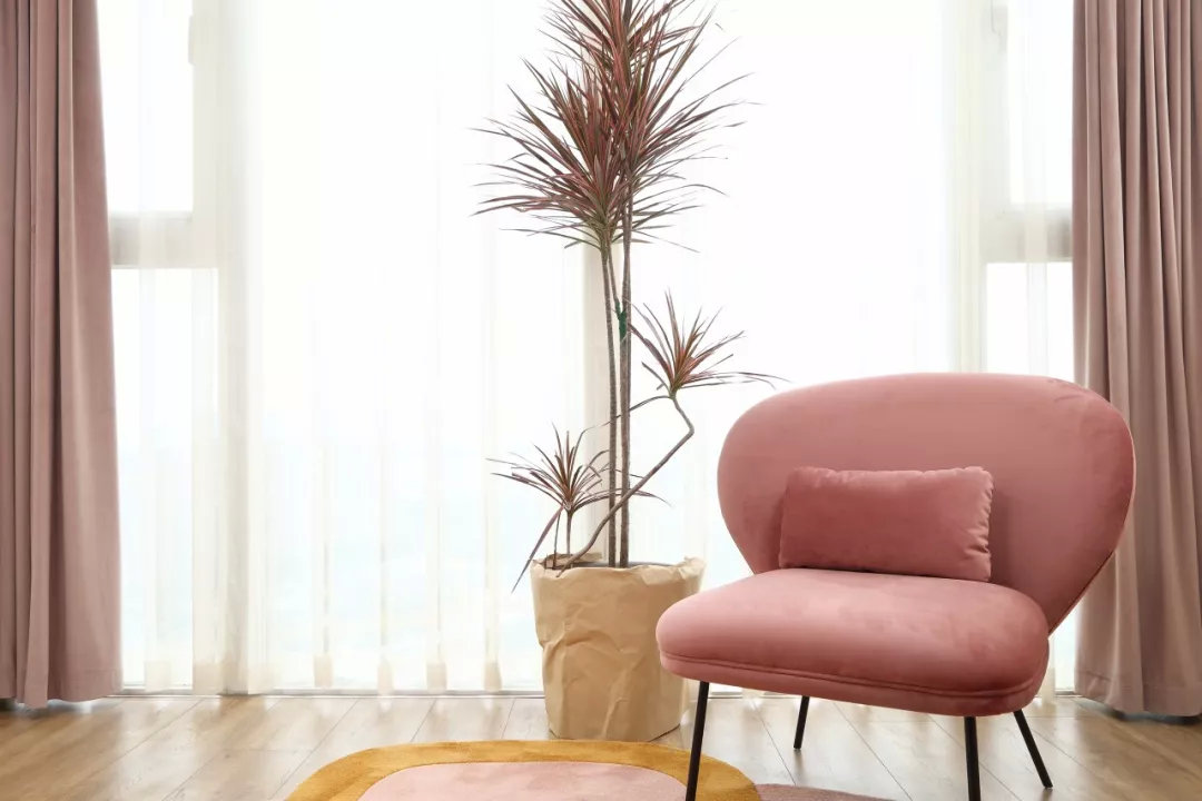 主臥室外的陽臺被包進來改成了一個休閑區(qū),粉色的窗簾和椅子結(jié)合,讓這個空間變得更加可愛和浪漫。